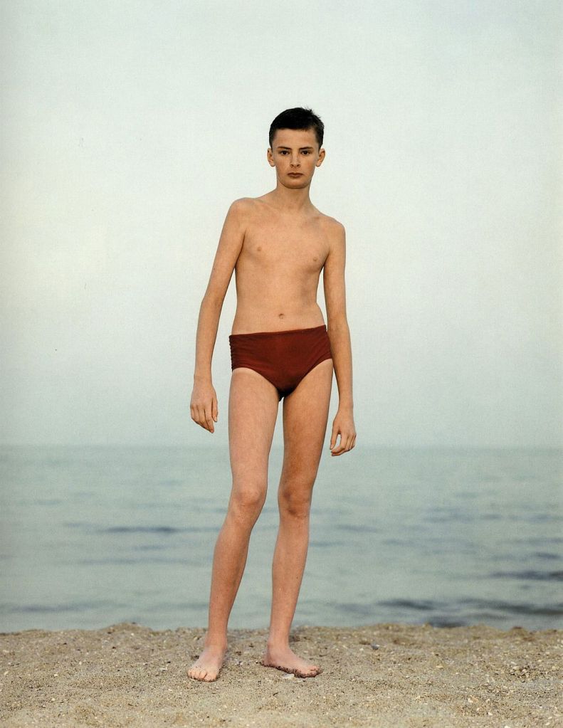 What is interesting about the series is that although they are taken in different countries at different times, the plain background on sand and sea gives no indication of were it is taken. It is interesting that they are taken far apart from each other. Each person probably has completely different lives but they are all similar in their awkward, teenage phase.