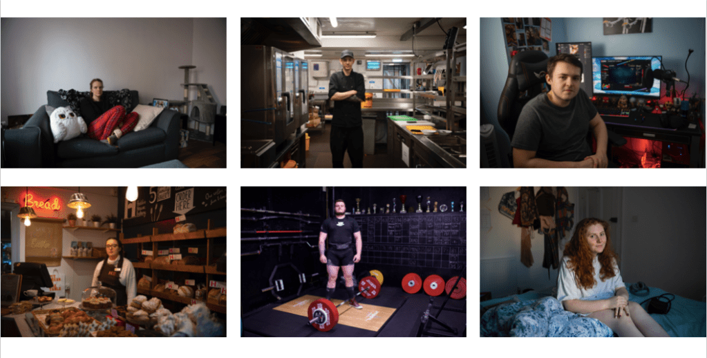 My aim for this project is to show that people around the ages of 22-24 are all doing different things and this is normal. There is no set path or thing you should be doing in your life. From looking at this set of images, it shows the different jobs, hobbies and rooms which portray my message. I am still unsure where my module will go from here but from what I have learnt in this project is to make sure I am happy with the images while I am still doing the shoot. This will save me having to reshoot what I have already done. Also if I am doing portraiture I need to be aware of the angle I am taking the image at, I am looking down on the subject too much.