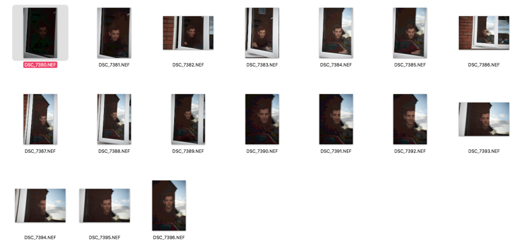 I don’t plan to do my shoots quick but I’ve realised for everyones safety that the quicker I am the better. Also although the person I am shooting has agreed to do the portrait, I am aware that they might worry about me being near there home. I still take the time to make sure I am getting good portraits but I am taking a lot less photos than I normally do in a shoot. It gives me less photos to choose from but at the same time it makes me wonder whether normally I take more than I really need to. Thinking back to my research and the representation of place, I have managed to show this in the photo above. He’s behind the window and this does make him look safe. The reflection gives the viewer some indication as to what he is looking out at, which adds to the sense of place.