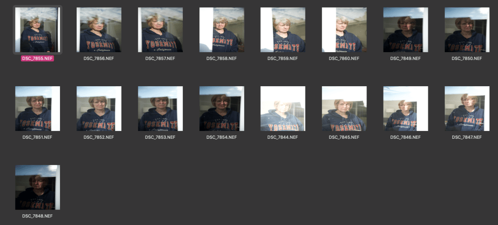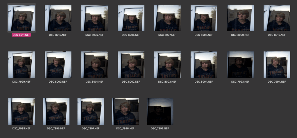 In my first shoot of my mum the reflection was too bright and therefore was too distracting from the main subject. Also since then I decided to make sure people did not smile in the photo. As it is someone I live with, I have been able to reshoot to improve this.