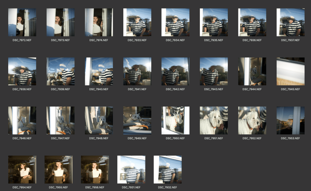 As usual I went at sunset but as it was a bright sunny day, the sun was really reflective on the windows. I faced the usual challenges of getting the reflection right, making sure the person stands out enough and being aware of the composition, all while trying to make sure my own reflection is not in the frame. The difficulty that was worse in this shoot was making sure there actually was a reflection. Both of their houses looked out at fields and so there was not a lot of interest in the reflection. I experimented with angles to improve this.